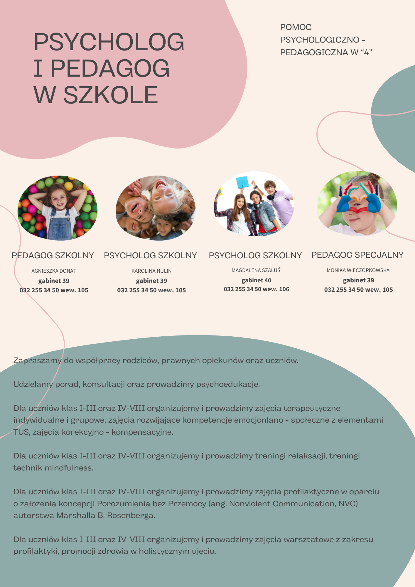 Godziny pracy psychologa, pedagoga szkolnego i pedagoga specjalnego:
