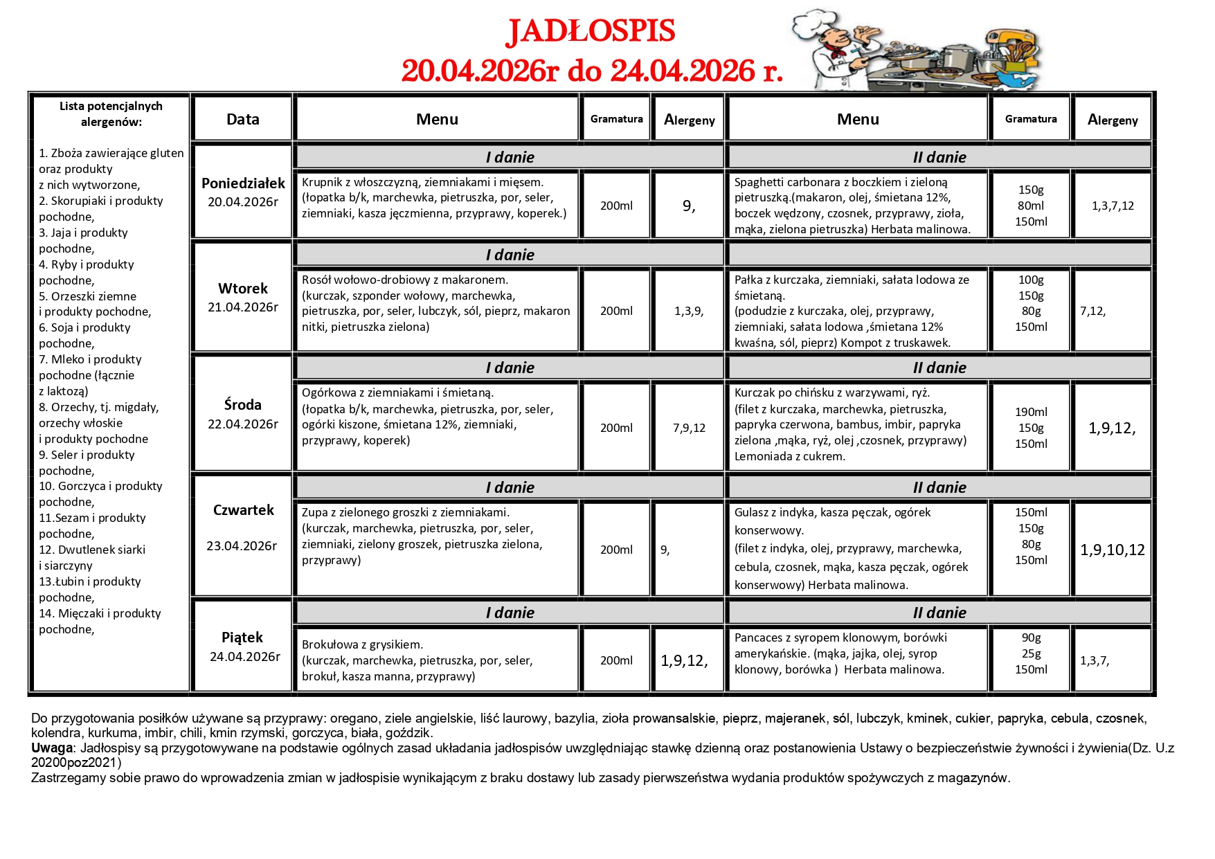 Strona główna » SZKOŁA PODSTAWOWA NR 4 im. JERZEGO ZIĘTKA » Stołówka » Menu